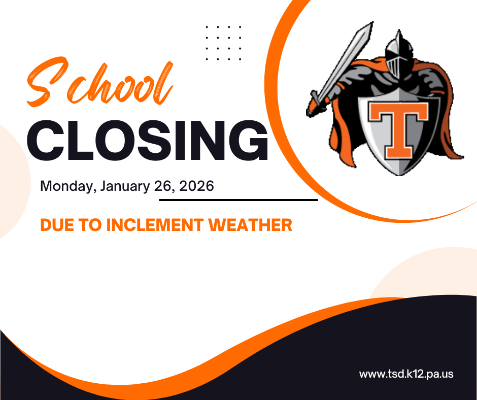 Due to inclement weather, the Towanda Area School District will be closed on Monday, January 26, 2026. This closure includes all after school activities.